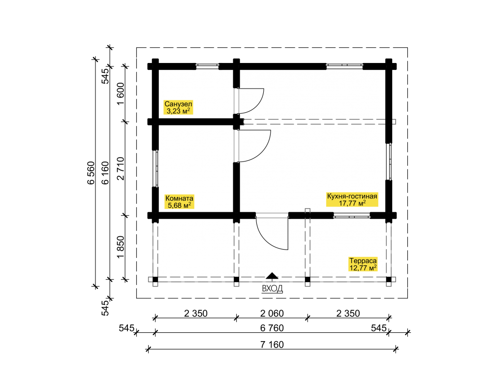 Дачный дом из бруса с верандой ОРЛЕНОК